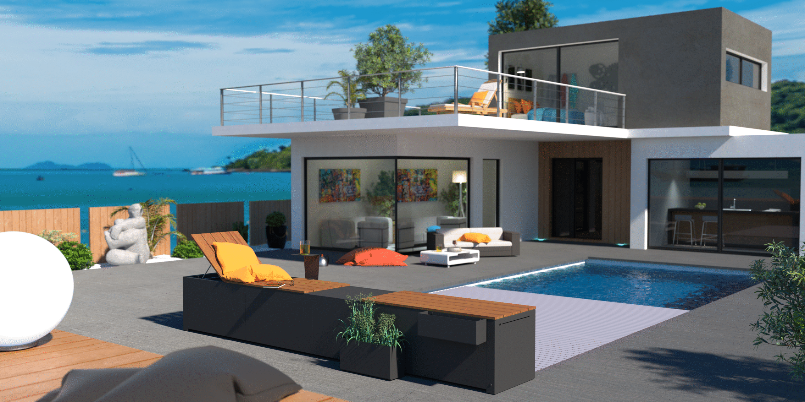 La e-Playa Dsign es una cubierta fuera del agua motorizada revestida, de líneas minimalistas y sobrias inspiradas en el mobiliario de exterior. De madera y metal, su estructura permite acoger varias zonas de asientos modulables y adaptarse a sus deseos de decoración y confort.