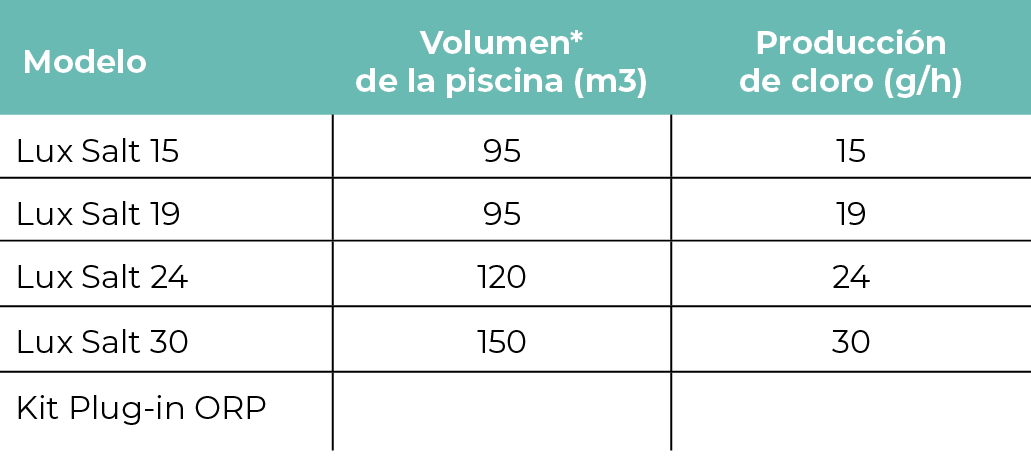 La gama Lux ofrece una solución avanzada para el tratamiento del agua de piscinas, con 4 modelos capaces de producir hasta 30 gramos de cloro por hora, garantizando una desinfección eficaz. Está equipada con una célula autolimpiadora de alta calidad, lo que prolonga su vida útil y reduce el mantenimiento. Su sistema de regulación inteligente y proporcional del pH, ya sea en modo ácido (pH-) o básico (pH+), se ajusta al volumen de la piscina para una dosificación precisa. Incorpora conectividad Bluetooth, facilitando su control desde dispositivos móviles. Además, cuenta con una pantalla digital que muestra el valor del pH en tiempo real, una bomba dosificadora silenciosa, y una sonda de pH de alta precisión, probada y calibrada de fábrica. Todo esto, cumpliendo con la nueva normativa europea (N.º 2019/1148), permitiendo ajustar la concentración del agente corrector de pH de forma segura y conforme a la legislación vigente.